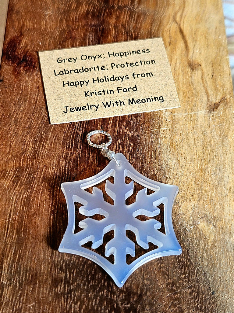Gray/Silver Onyx offers grounding, steadiness, and a calm center during busy times. Labradorite enhances intuition, inner light, and a sense of wonder. Together they create a winter-inspired talisman of clarity, peace, and gentle protection.
