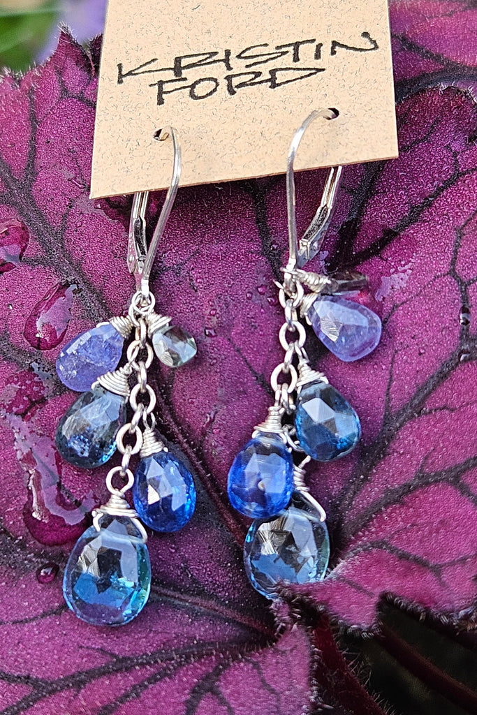 One of a Kind London Blue Topaz, Kyanite, Tanzanite & Iolite Earrings