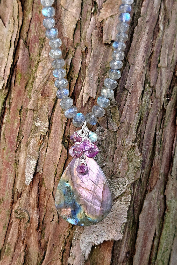 One of a Kind Purple Labradorite & Raspberry Sapphire Necklace