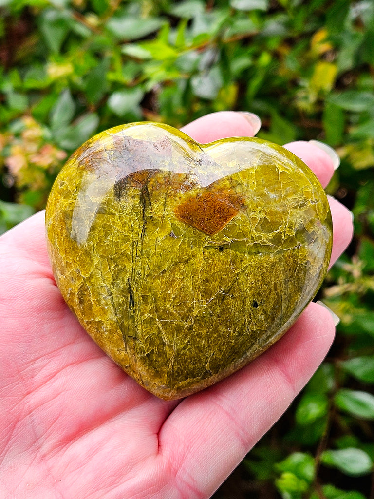 Carved into the shape of a heart, Green Opal’s energy becomes even more grounded and intimate. The substantial size and weight of this piece add to its stabilizing quality, making it feel like a true anchor for the heart space.
